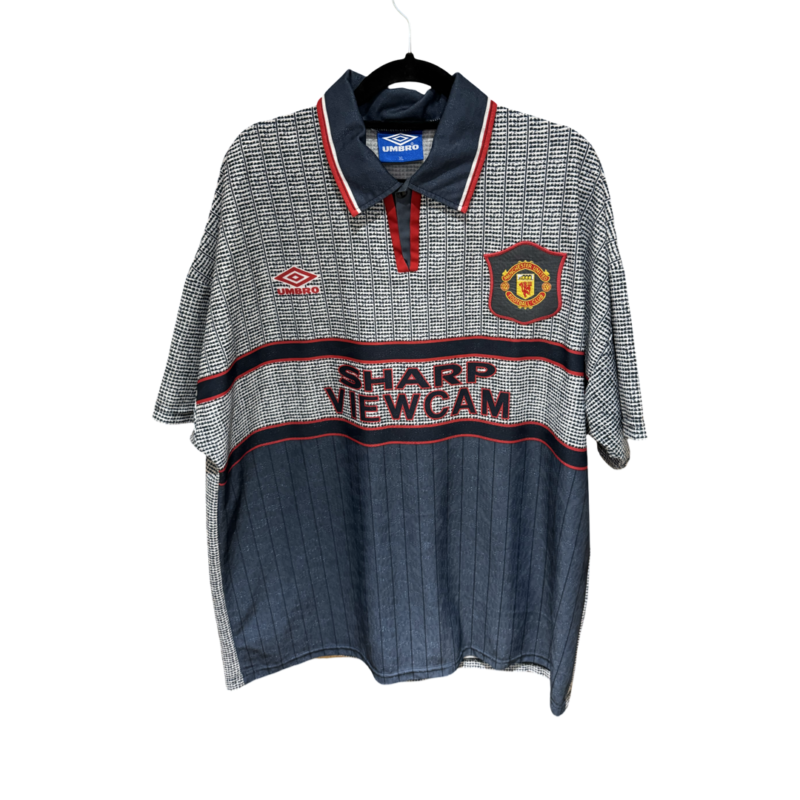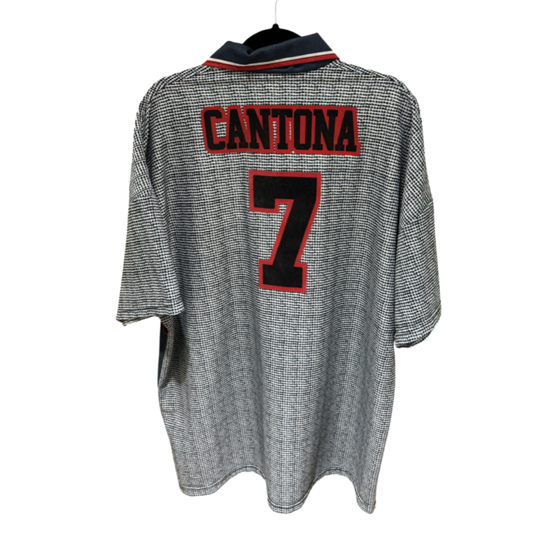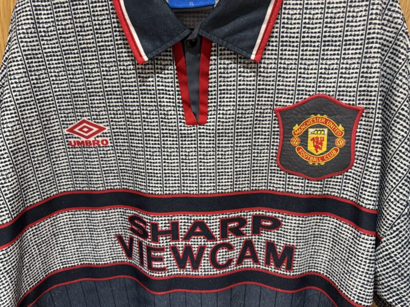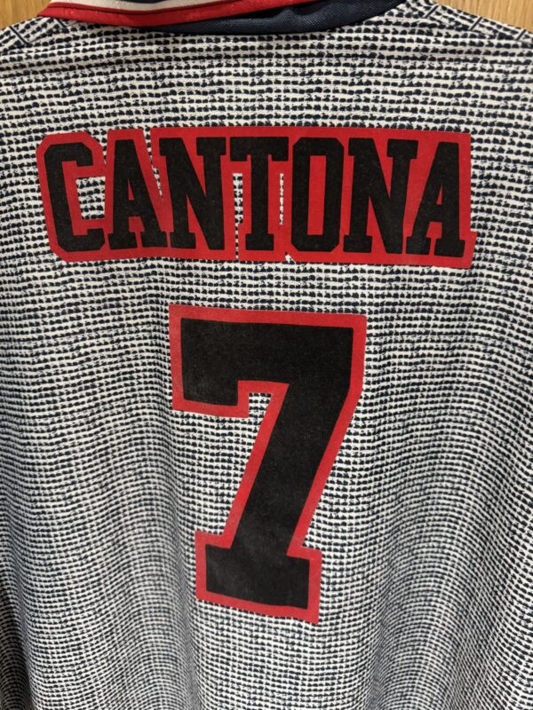 Special Features – Rare original away shirt from the 1995-96 season with embroidered club badge and embossed Umbro motif and iconic Sharp sponsor. This shirt also has original #7 Cantona flock nameset on the back. This shirt is an original, please check all photos for authenticity.