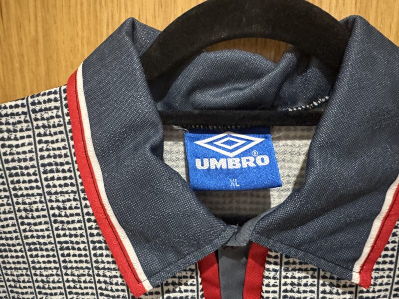 Made by: Umbro, 100% Polyester. Collar label faded a little but 100% authentic
